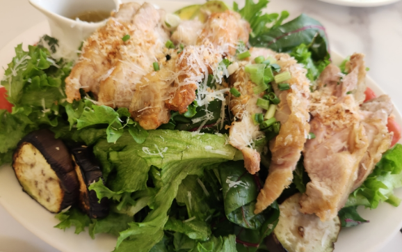 - 겉바속촉한 치킨에 상큼한 드레싱이 곁들여져 건강한 맛!