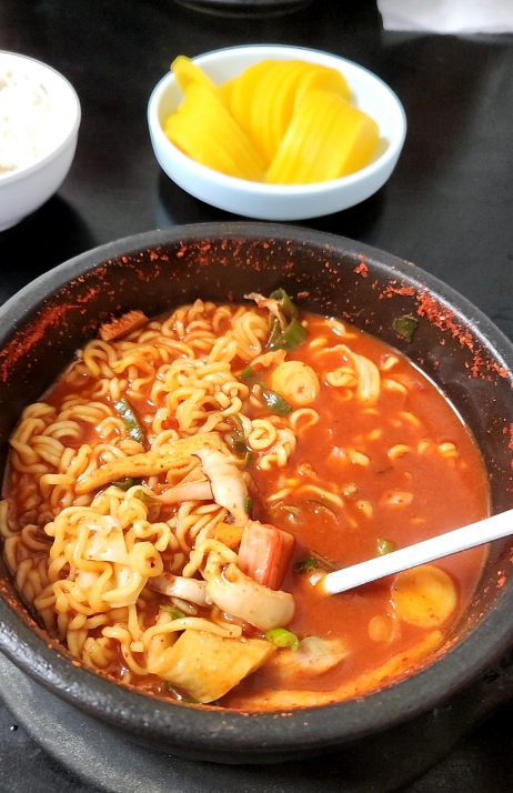 - 뜨거운 돌솥에 보글보글 나오는 라면